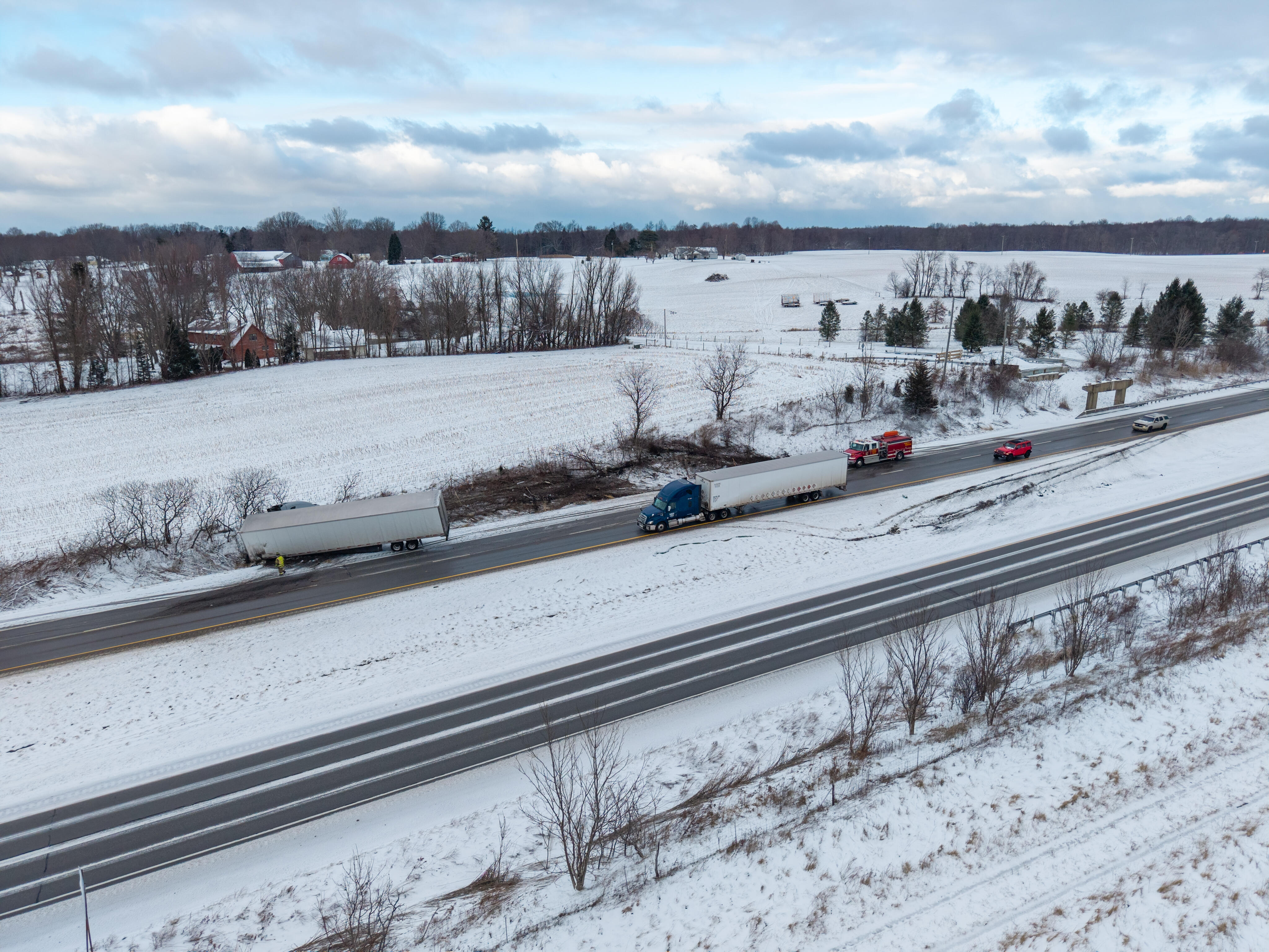 Traffic was impacted while emergency personnel secured the scene and addressed the fuel leak. Motorists are reminded to slow down, remain alert, and use caution when traveling through incident scenes, particularly in adverse weather. Remember to turn on headlights, reduce speed, and move over for emergency responders.