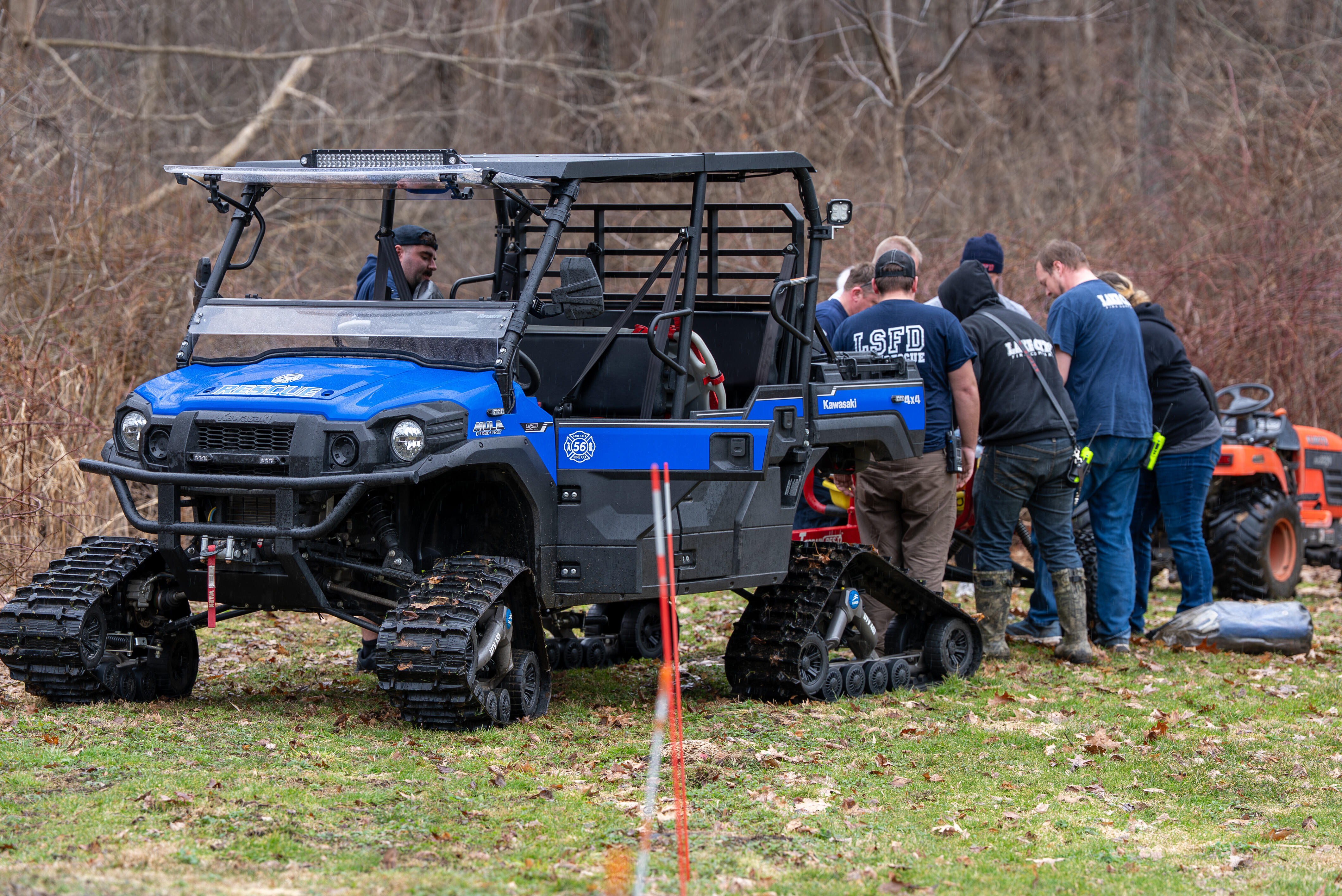 Girard Township, PA – This evening at around 6:45 PM, water rescue technicians, rescue personnel, and medical personnel from Lake City Fire Company and West County Paramedics were dispatched to a report of stranded fishermen at an inlet near the mouth of Elk Creek. Lake City responded to the incident with nine personnel total, including six water rescue technicians and three support personnel. The individuals had reportedly attempted multiple times to cross back to shore but became stuck in deep mud, in some spots nearly waist-deep.West County 112 and Chief 560 went enroute to the scene shortly after the initial dispatch. While enroute, Erie County 911 advised that the three individuals were on land and not in the water, with no reported injuries, but were unable to make their way back across due to thick mud conditions. Chief 560 arrived first on scene and reported seeing lights in the trees while approaching the vicinity of the mouth. Upon arrival, he confirmed three subjects were located on the island with no active distress but surrounded by difficult mud conditions.Ambulance 577 and Utility 566, along with the department’s mule, went enroute to the scene. Ambulance 577 and West County 112 arrived shortly thereafter and staged near the incident location. As Utility 566 approached, Chief 560 instructed the crew to illuminate the wooded area in an attempt to locate an alternate path to extricate the individuals from the island. After checking the area with no viable route found, Water Rescue 579 arrived on scene a short time later.Following a quick assessment of the area, crews determined the safest course of action would be to deploy the inflatable RDC and ferry the individuals across the water.Support and technical personnel on scene inflated the RDC using air tanks while additional members established a rope-based rigging system. A throw bag with rope was deployed to the stranded individuals, allowing them to pull the RDC across to their side of the island. During the first ferry trip, two individuals were transported across the water on the RDC. Once back on the shoreline, they were evaluated by EMS and subsequently released. A short time later, the final individual was ferried across to land and was also evaluated and released by EMS. No injuries were reported.