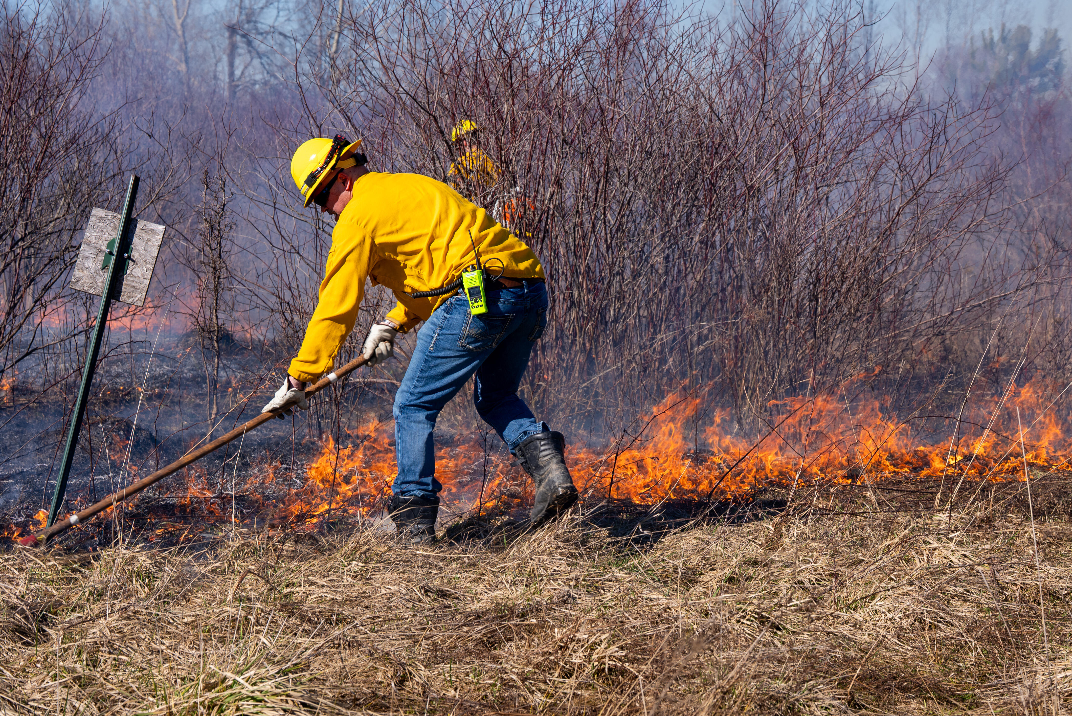 Wind-Driven Brush Fire Threatens Structure Along Route 98 in Franklin Township