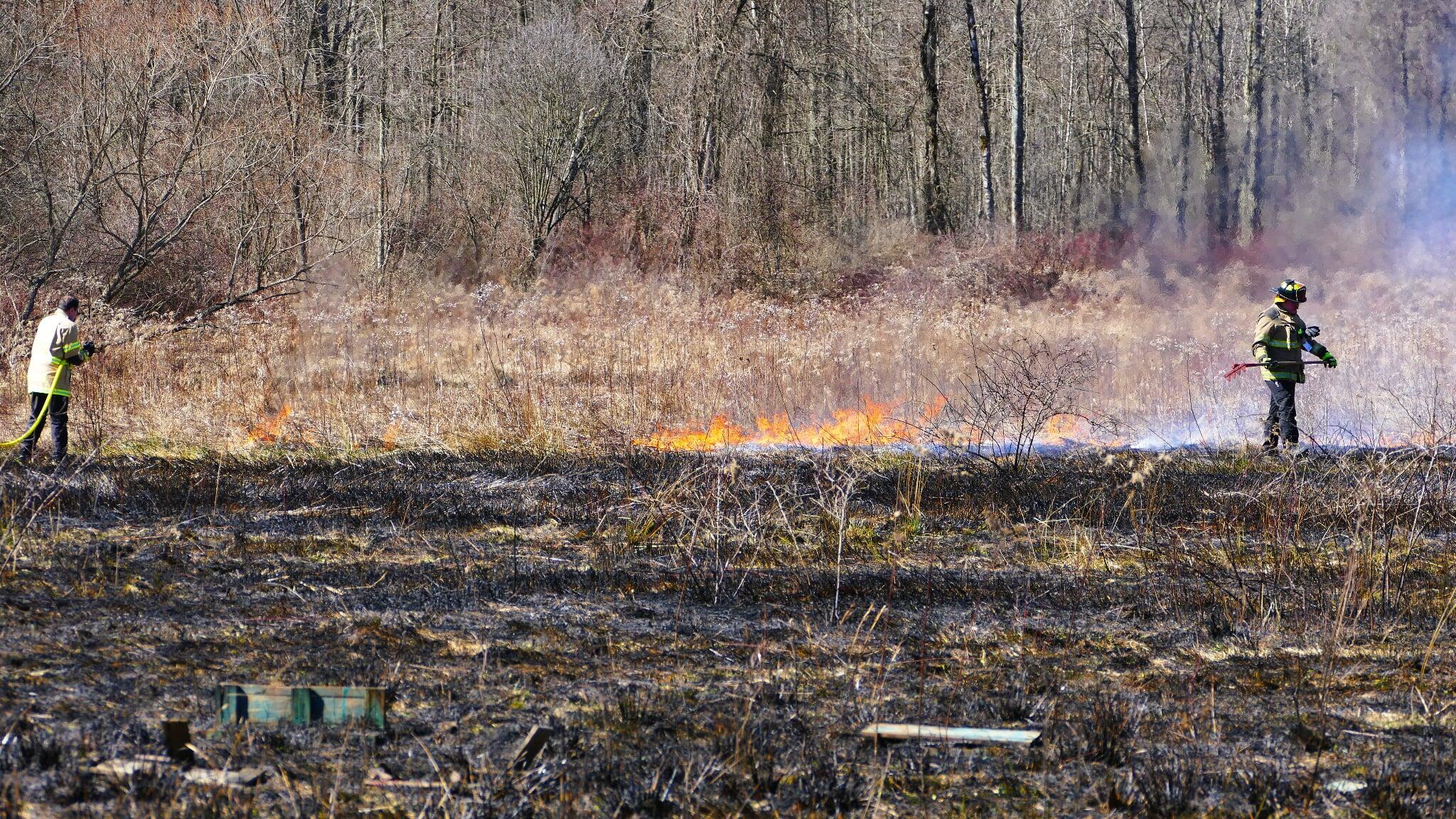 Franklin Township, PA – This afternoon at approximately 3:20 PM, firefighters from Franklin Township and the Edinboro Volunteer Fire Department were dispatched to a reported brush fire in the vicinity of 10200 Route 98. A.F. Dobler Hose Company was added to the assignment shortly after the initial dispatch for a brush truck response.Edinboro’s 38L1 arrived on scene and advised the fire was not a controlled burn, requesting all incoming units to continue priority one and asking for a tanker if one had not already been dispatched. 38L1 also reported that the wind-driven fire had spread to approximately one acre and was threatening a nearby structure located about 50 feet away, requiring crews to quickly work to cut off the fire’s advancement.Edinboro’s Brush Truck 397 arrived shortly after and crews deployed Indian tanks and hand tools, including rakes, along the fire perimeter to stop the forward spread. Girard Brush Truck 548 arrived a short time later and was directed to access the backyard with additional manpower and hand tools to assist with containment.The fire was placed under control at approximately 3:48 PM, about 11 minutes after Edinboro’s brush truck arrived on scene. Command then downgraded Engine 383 to priority two while crews remained on scene to continue investigating the cause of the fire. Once crews checked for hotspots and areas of smoldering debris, crews returned back in service.