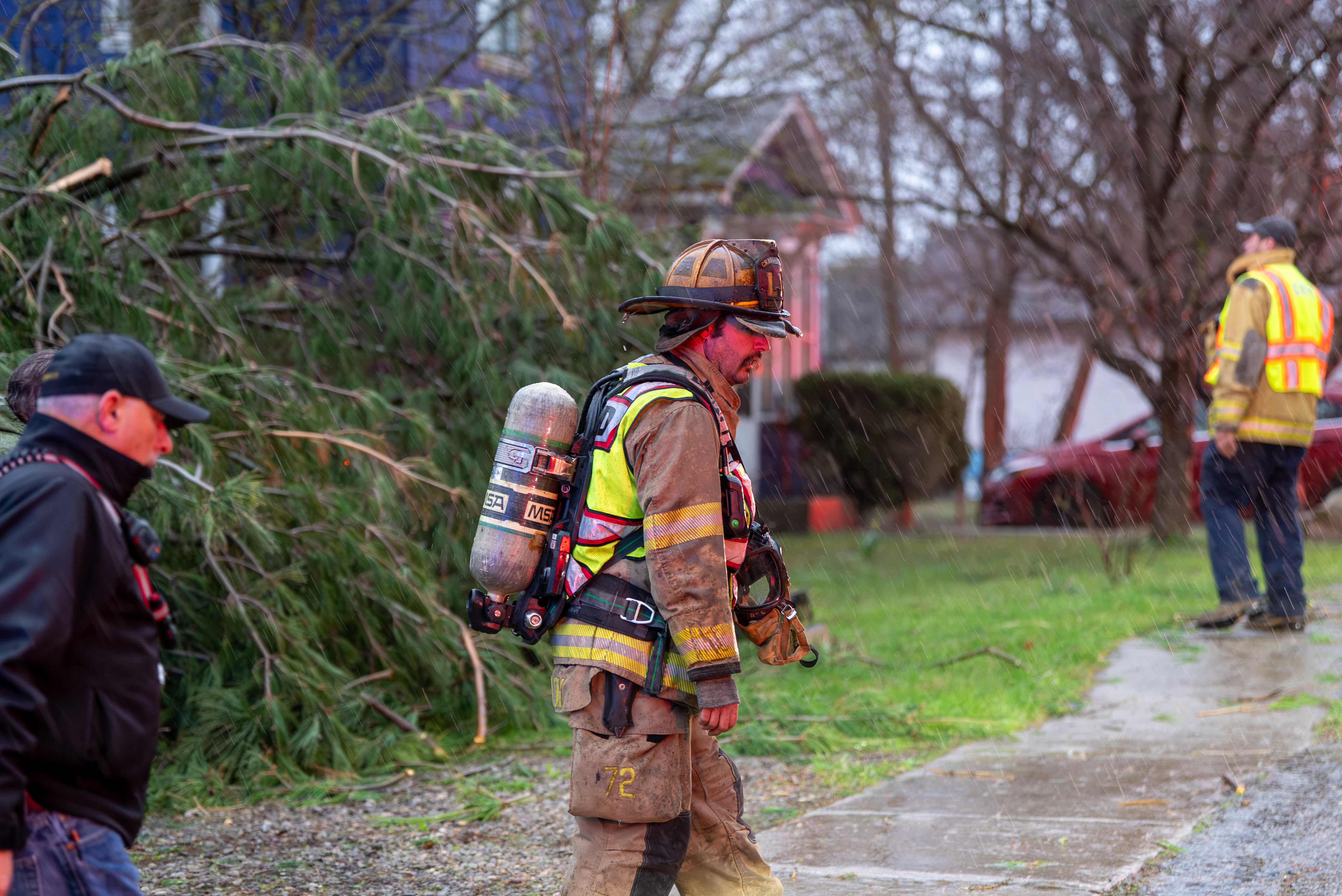 Cranesville, PA – This evening at approximately 6:40 PM, firefighters from Cranesville Volunteer Fire Department were dispatched to the area of 10040Meadville Road for a reported tree down on a residence. Initial dispatch information indicated possible entrapment, a gas leak, and wires down, prompting a rapid response. Erie County 911 received multiple calls reporting the incident.