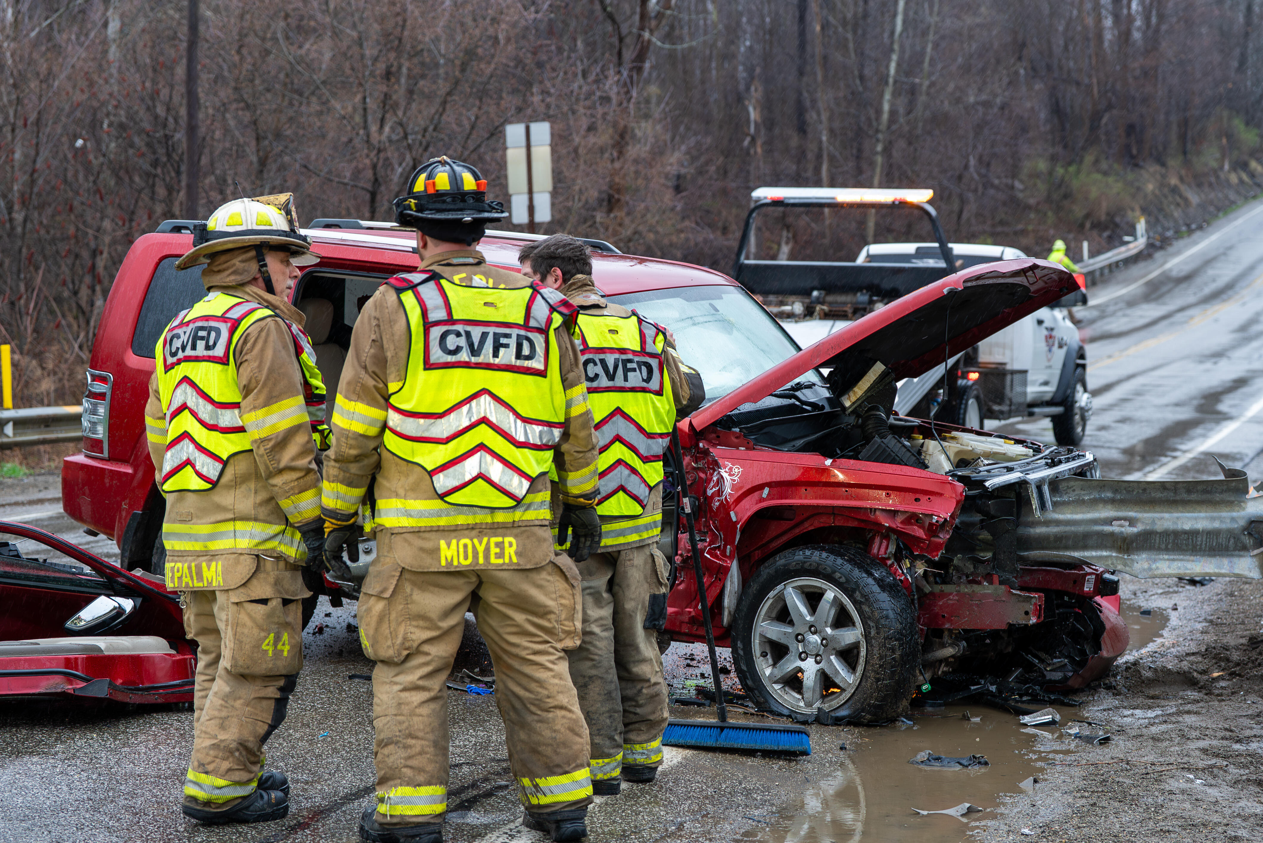 At the scene, crews quickly determined that a section of guardrail had penetrated through the vehicle, complicating the rescue. Personnel from Springfield and Cranesville quickly initiated extrication efforts, utilizing hydraulic rescue tools to remove the vehicle’s doors and gain access to the occupant. Firefighters used cutting tools to cut a portion of the guardrail, relieving pressure on the vehicle and allowing for a controlled extrication of the occupant. Due to the number of individuals involved, a third ambulance was requested to the scene, bringing West County 110 to assist and later transport.